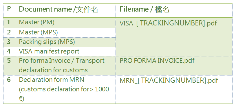 注意: 文件P4 (運單)有二種不同的版本. 您將會收到文件P4a 或P4b(參照附件).